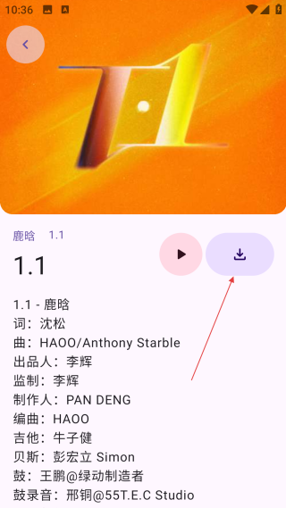4、在歌曲详情页,点击【下载按钮】,即可将这首歌曲保存至本地设备中。