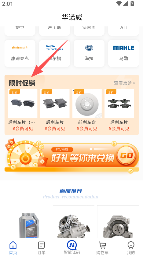 2、支持限时促销查看功能,在首页浏览限时促销板块,查看优惠的汽车配件内容。