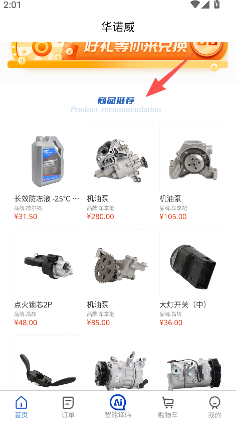 3、具备商品推荐浏览功能,查看商品推荐板块,选择适配需求的汽车配件。
