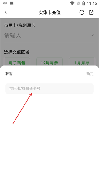4、当需填写卡号时,页面会弹出【市民卡/杭州通卡号】输入框,在此框内准确输入对应卡号,完成后可点确定继续操作。