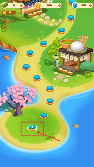 2、进入主场景后,点击被框选的【1】号关卡入口,进入关卡1的点心服务挑战,目标是满足顾客的点心需求。