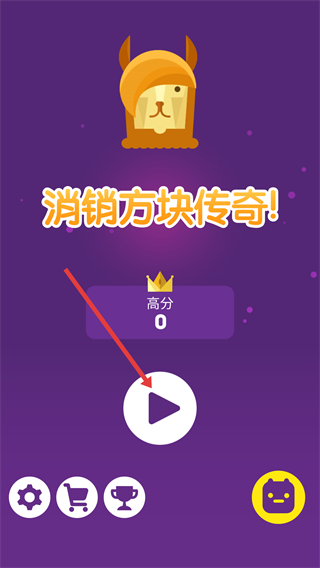 1、在“消销方块传奇”启动界面,点击中间的播放按钮,进入游戏的方块消除操作界面。