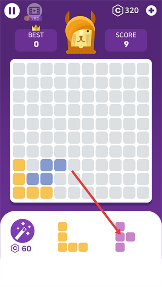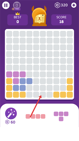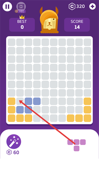3、将方块调整到合适的角度后,将底部出现的方块拖拽至上方网格内对应区域的方块区域,为后续的方块拼接消除做铺垫。