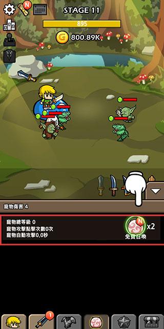 1、在【STAGE11】战斗中点击魔物获取金币,用金币购买自动攻击武器,提升【BladeCrafter2】的战斗效率。