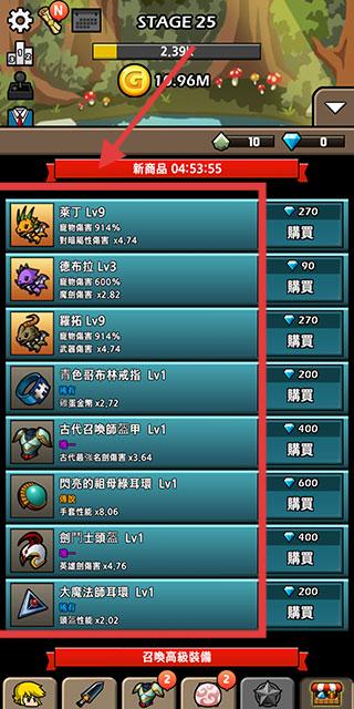 4、在【STAGE25】的新商品界面,用钻石购买宠物与装备,提升整体战力推进【BladeCrafter2】关卡进度。