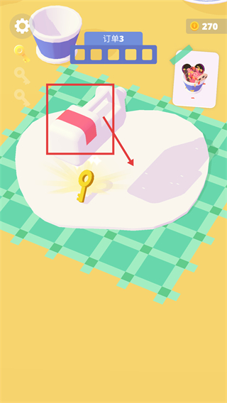 1、订单3界面中,点击被框选的物品,把牛奶倒入盘子中。