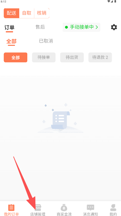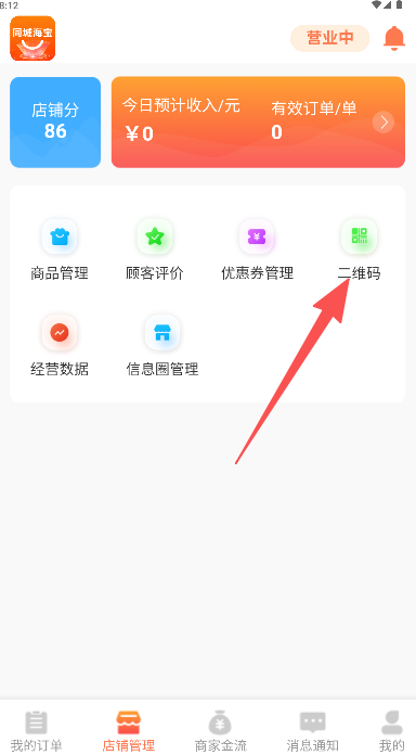 1、在首页底部导航栏点击“店铺管理”进入商家后台界面。