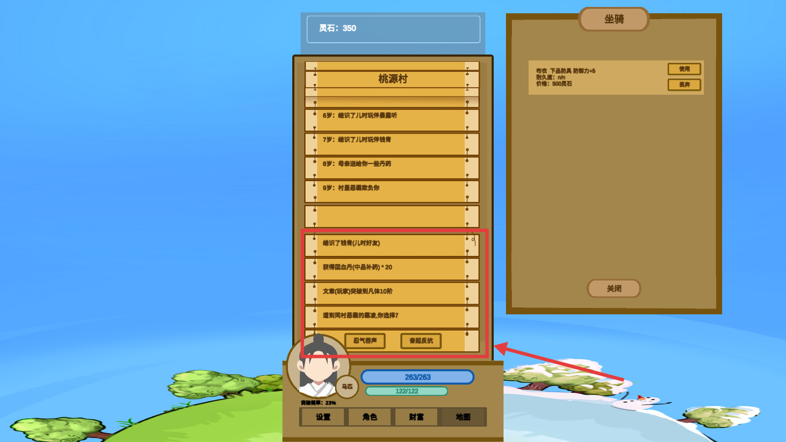 4、遇到村恶霸时选择【奋起反抗】选项,解锁朋友协助事件提升修为并影响后续剧情走向。
