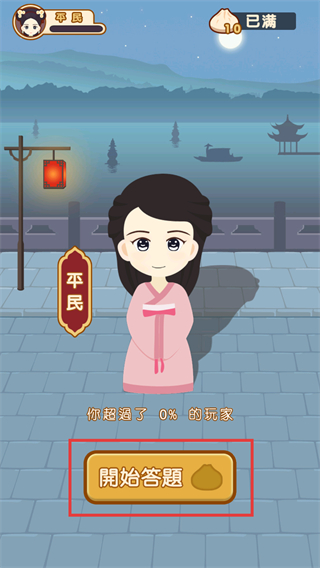 1、界面显示【平民】身份,点击【开始答题】按钮进入答题环节,可推进进度提升身份等级。