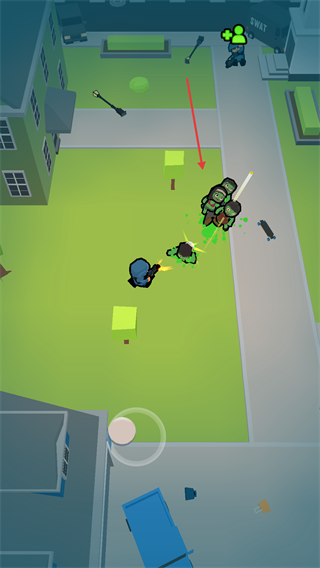 1、通过滑动屏幕控制角色移动,精准射击消灭僵尸,同时留意幸存者位置,及时前往救援以扩大团队力量。