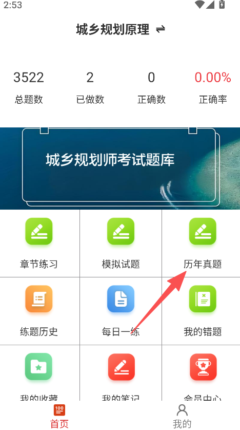3、配备练题辅助功能,包含练题历史、我的错题、我的收藏等内容辅助备考练习。