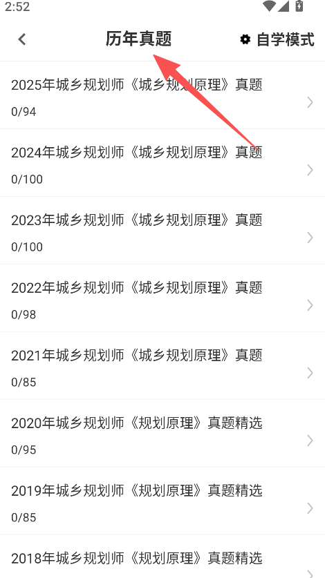 2、在历年真题页面选择目标年份的真题,进入做题界面。