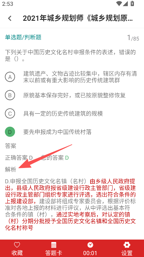 3、完成题目作答后,查看对应题目的答案及解析内容。