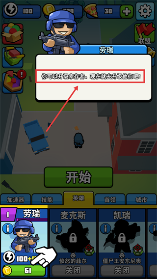 1、进入游戏后优先升级【劳瑞】等幸存者,利用破解版免费道具快速提升属性,增强初期对抗僵尸的能力。