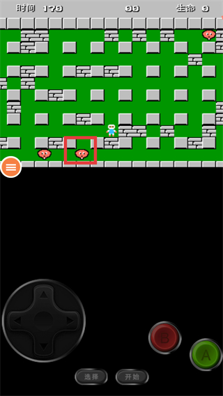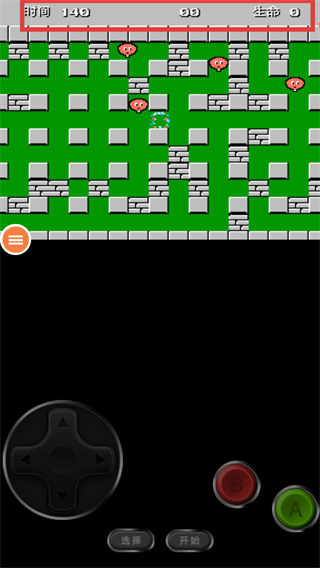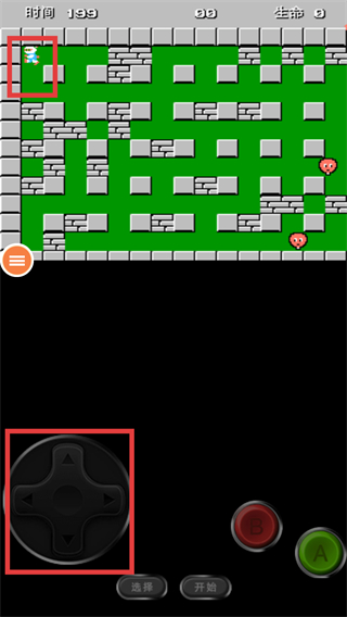 2、进入游戏关卡后,通过底部的方向键操控角色,在由砖块构成的迷宫场景中移动,避开障碍。