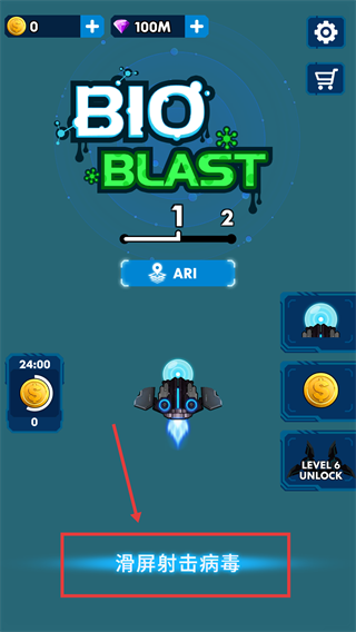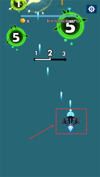 1、通过滑动屏幕控制飞船移动方向,利用自动攻击功能打击前方病毒,注意躲避变速病毒的突袭,确保飞船安全推进。
