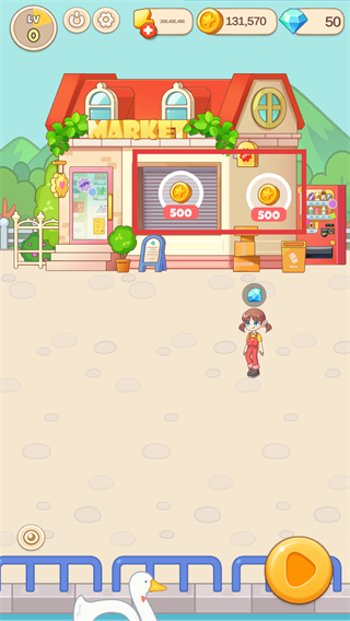 4、进入店面场景,点击方框内【500金币】进行装修店面。