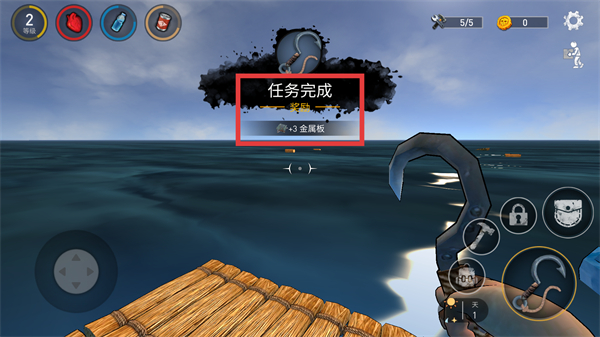 3、继续用【钩子】勾取红框内的漂浮资源,同时左侧会显示收集到的物资数量。