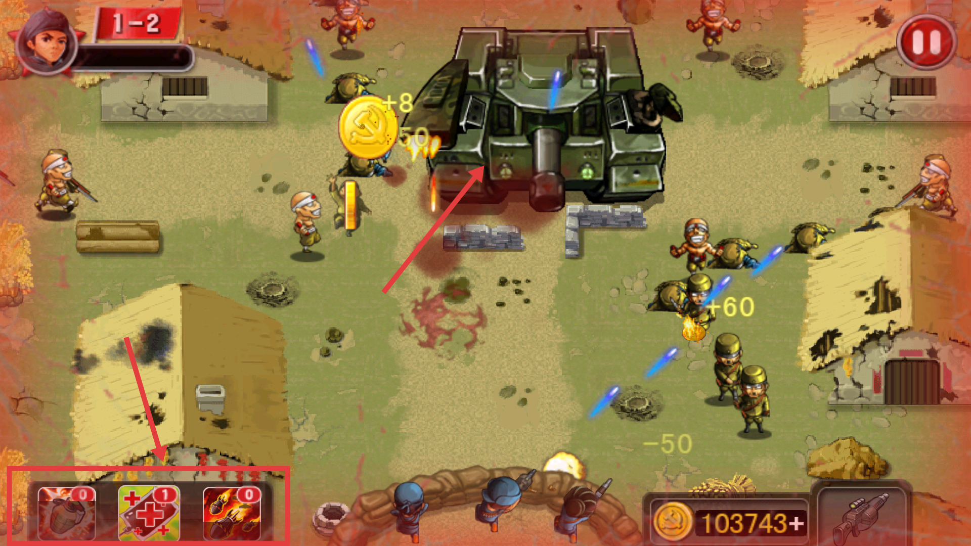 4、战斗中召唤【坦克】支援,利用其高火力压制敌人,快速清理战场推进关卡进度。