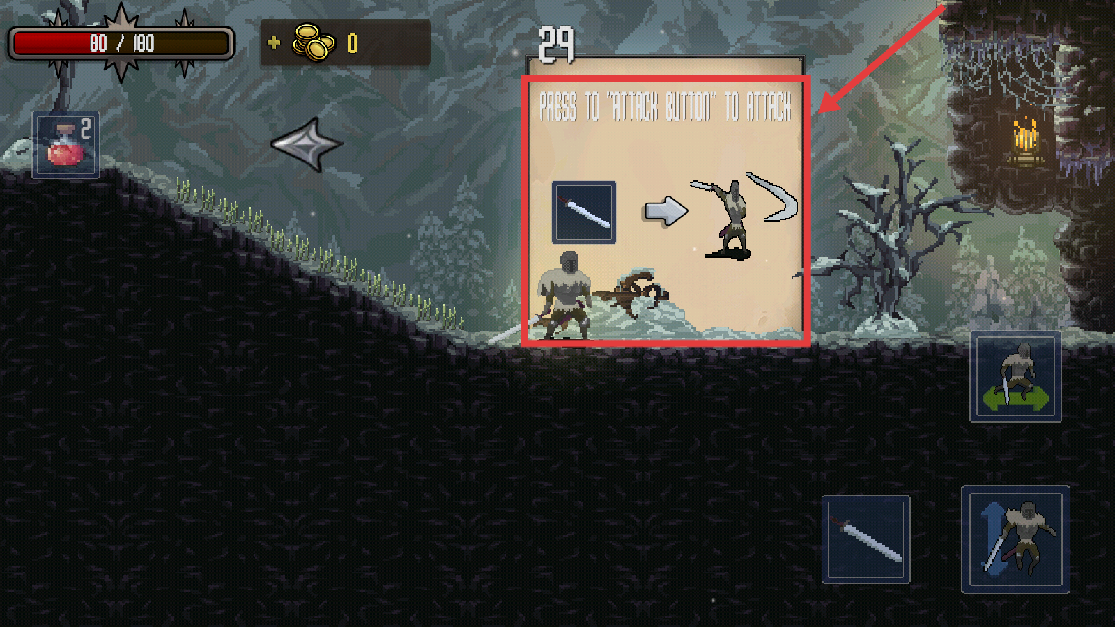 3、遇到敌人时按下【ATTACKBUTTON】发动攻击,快速消灭怪物推进游戏进程获取经验。