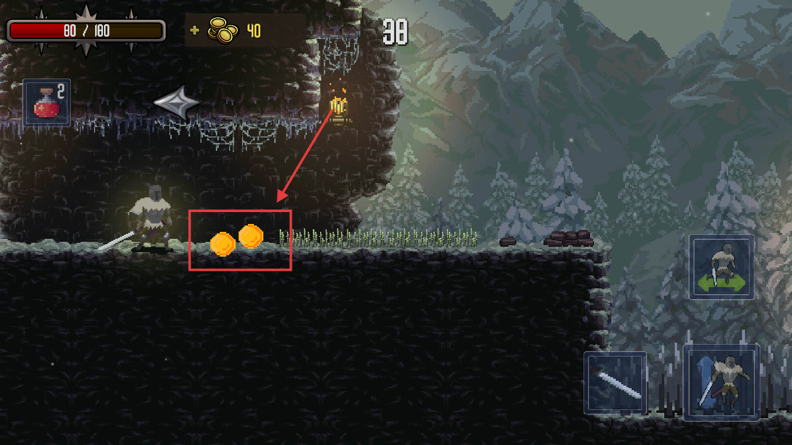 3、左侧屏幕控制角色移动方向,右侧操作攻击与跳跃动作,合理搭配应对不同敌人的攻击。
