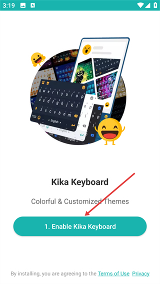 1、点击界面上的【EnableKikaKeyboard】按钮,开启输入法的基础功能,这是使用前的必要步骤,能解锁后续个性设置与输入体验。