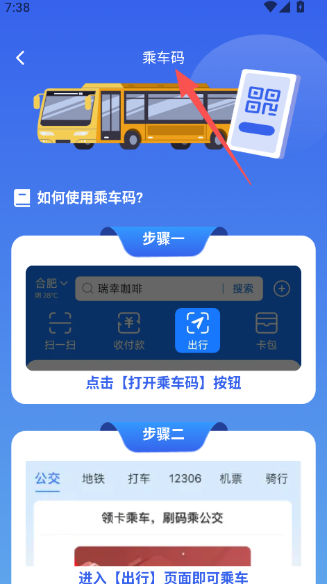 2、乘车码使用步骤清晰展示,无需额外查找即可快速掌握使用方法助力顺利乘车。