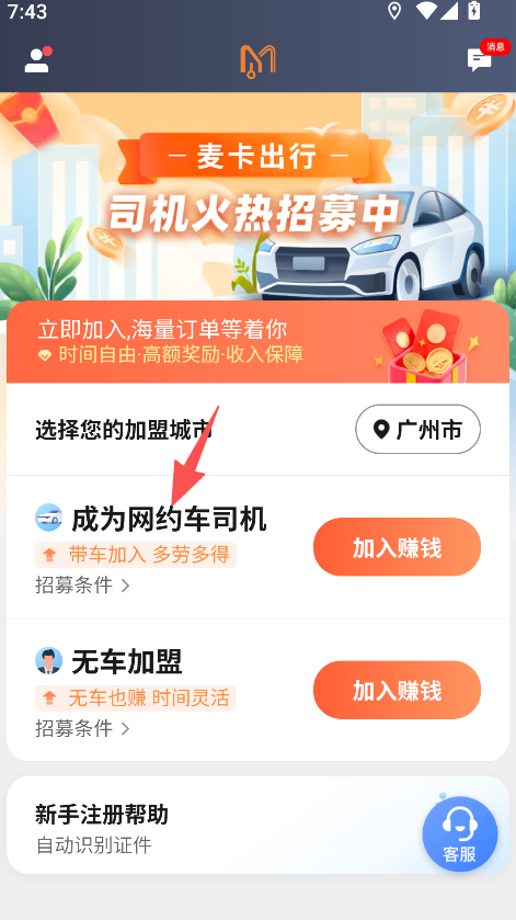 《麦卡出行司机》是一款招募网约车司机的软件,设成为网约车司机(带车加入)、无车加盟两种方式,可选择加盟城市,支持搜索或选择运营城市,需提交身份证、驾驶证、行驶证等注册资料,配备新手注册帮助及客服功能,提供时间自由、高额奖励等加盟优势,助力有意向者完成司机加盟流程,获取海量订单开展运营。