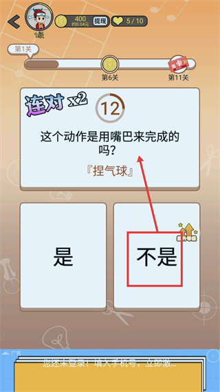 3、问题【这个动作是用嘴巴来完成的吗?】对应动作【捏气球】,选择选项【不是】。
