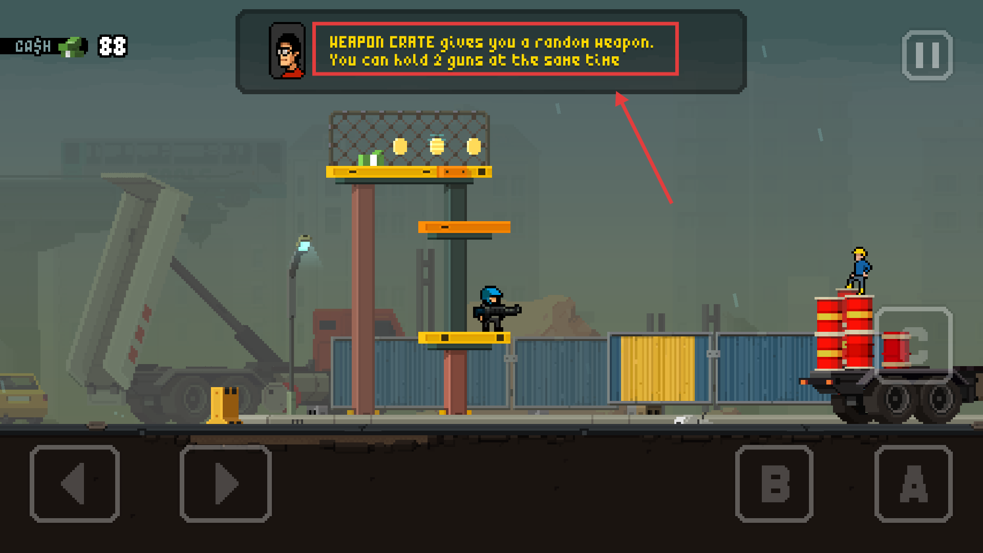 1、获取【WEAPONCRATE】得随机武器,可同时持2把枪,需平衡火力与跳跃机动性,灵活选择武器应对敌人。