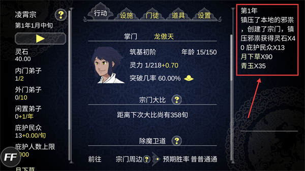 2、掌门尽早交接,让灵根特质优秀的天选之子接任,开启副本挑战,推进宗门战力提升。