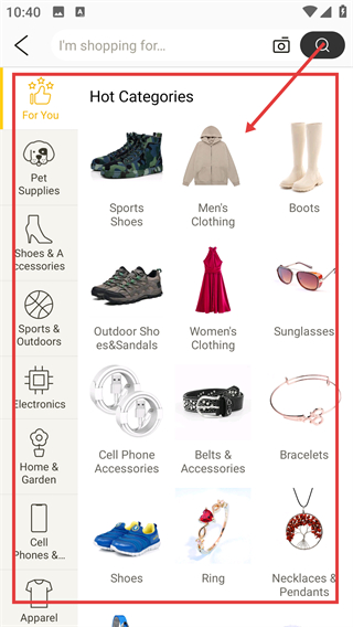2、进入分类页后,在【Hot-Categories】板块选择想逛的商品分类,就能进入对应类目的商品列表哦。