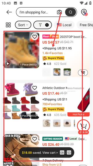 3、在商品列表页选中心仪商品,点击商品旁的购物车图标,就能将商品加入购物车,方便后续结算啦。