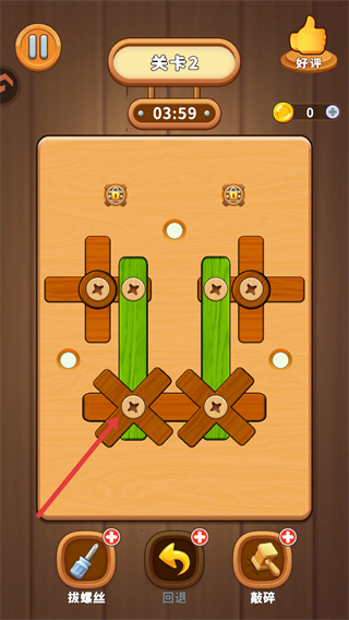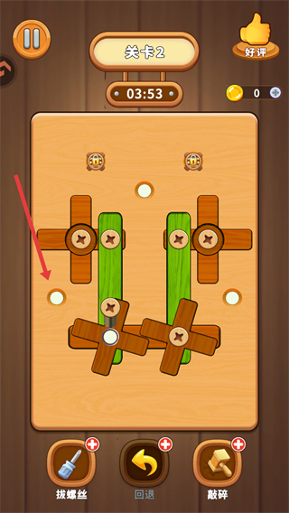 3、将拔出的螺丝放置到【空位】中,木板将会脱落,将所有螺丝拔出即可通关。