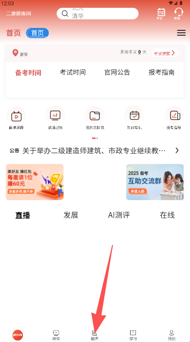 3、首页聚合考试倒计时、考试公告与备考课程等核心信息,实现一站式查考与指引,学习路径清晰。