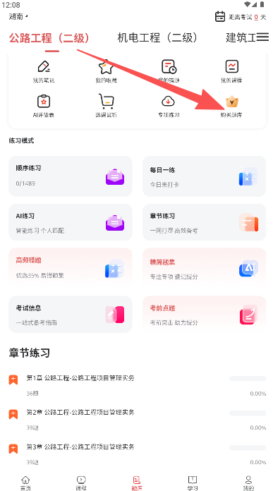 2、练习模式设计多样,包含顺序练习、章节练习、每日一练与高频错题,适应不同复习阶段的学习需求。