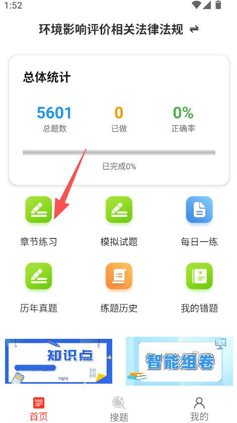 1、提供章节练习功能,进入对应页面选择目标章节,浏览该章题目,开展环境评价工程师考试的刷题练习。