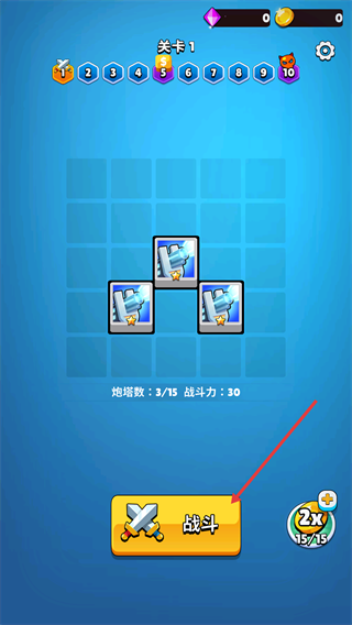1、进入游戏,点击底部的【战斗】按钮,开启当前关卡的挑战。