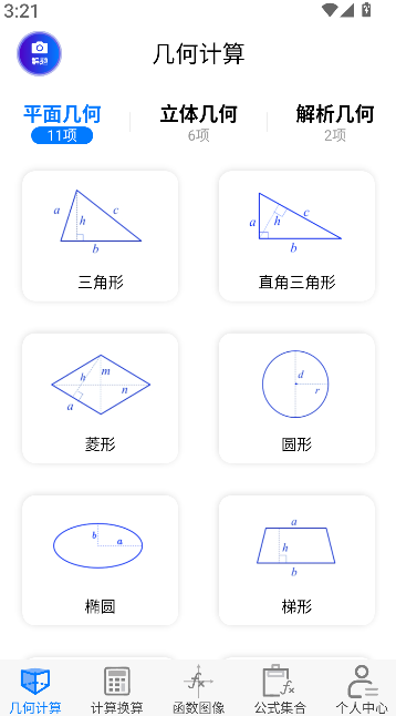 1、进入软件后,在首页找到几何计算入口,点击进入即可进行面积、角度等相关测算。