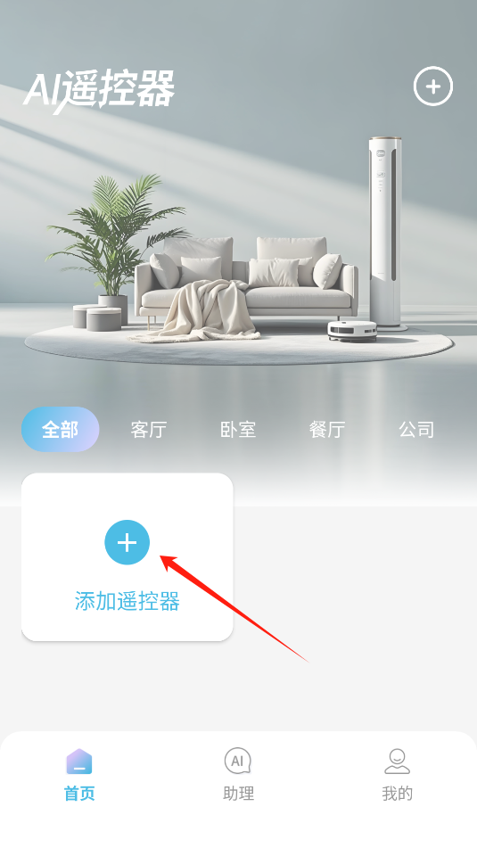 1、打开APP,点击界面中的按钮,添加遥控器。