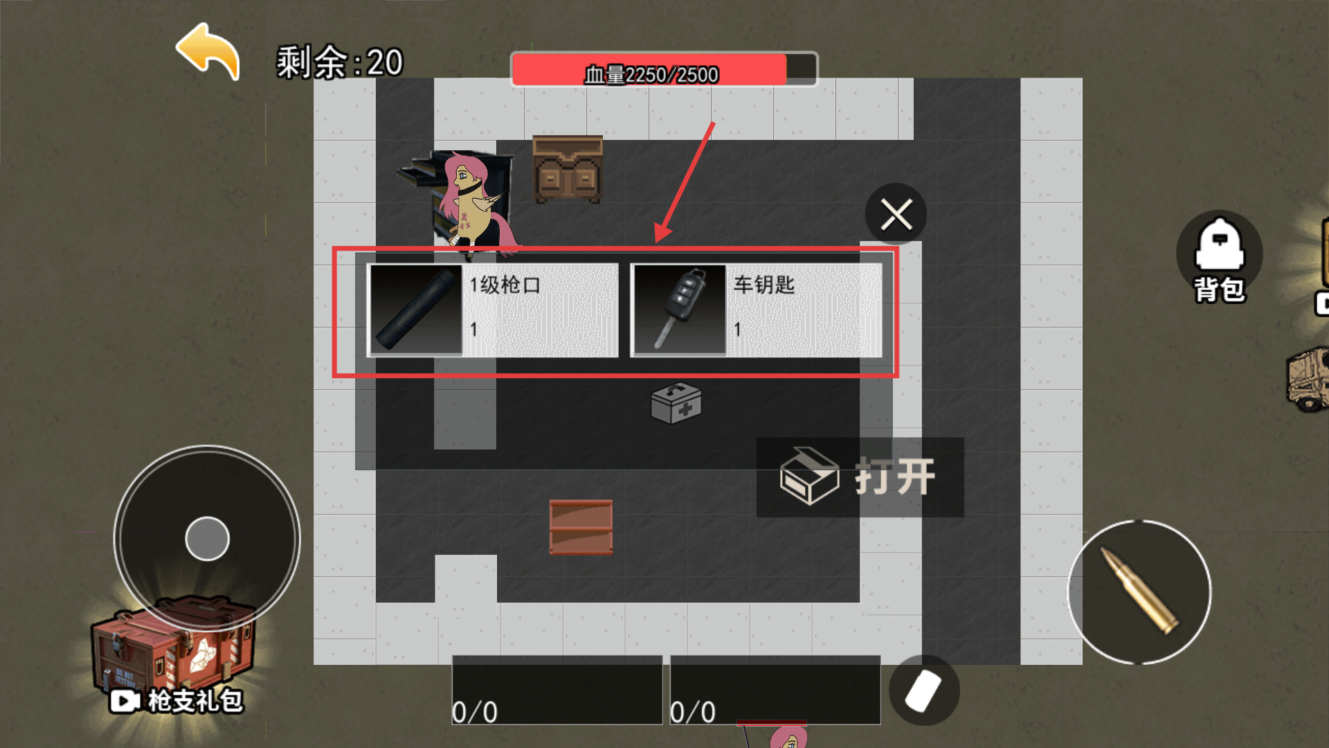 4、开启宝箱获取【1级枪口-车钥匙】等道具,装备配件提升枪械性能,解锁载具助力战斗。