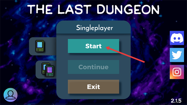 1、进入游戏后,选择【Singleplayer】模式,点击【Start】按钮开启单人地牢冒险。