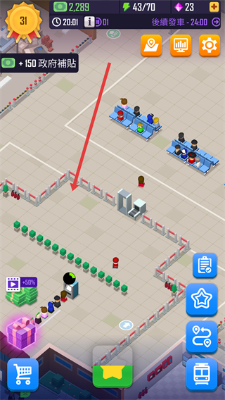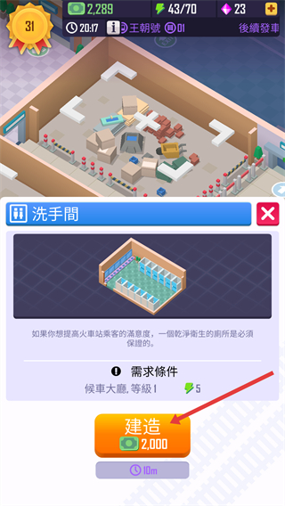 2、所有升级项目都能一键满级,安检设备、候车室、月台等设施瞬间达到最高效率,省去等待时间。