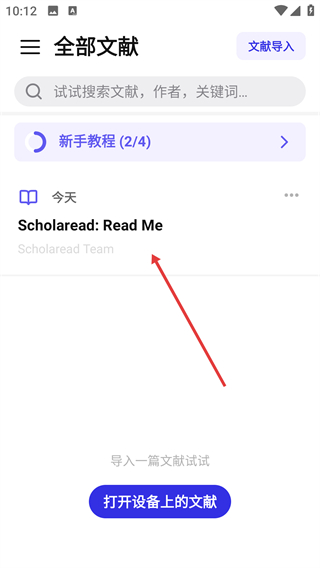 1、在全部文献页,可通过搜索框查找文献,或点击【Scholaread:Read Me】进入文献阅读界面,开始学术文档查看。