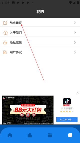2、在个人界面,点击【给点建议】选项,进入建议反馈的操作页面。
