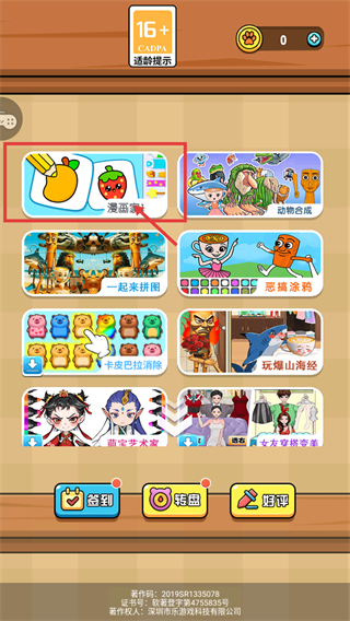 1、进入界面后,点击红框标注的【爱画画】分类,可进入该类别的绘画玩法选择界面,开启创作相关的准备环节。