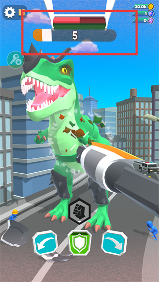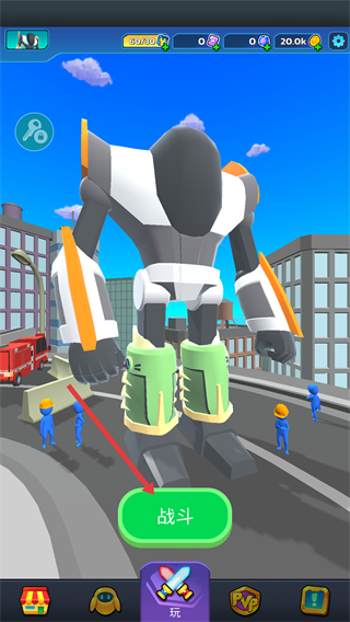 2、对战【恐龙机甲】时,点【拳头图标】攻击。