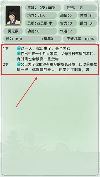 3、文字构筑的修仙天地里,无限属性带来畅快提升体验,随机事件与自主选择碰撞出多样人生可能。