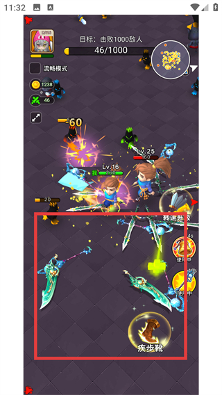 4、将敌人击败后,会掉落许多武器和道具,操控角色进行拾取获得增强。