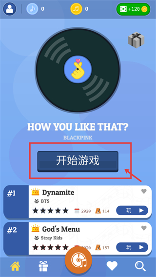 1、定位【HOW-YOU-LIKE-THAT?】对应的【BLACKPINK】曲目,点击红框标注的【开始游戏】按钮,即可进入该曲目的游戏准备环节。